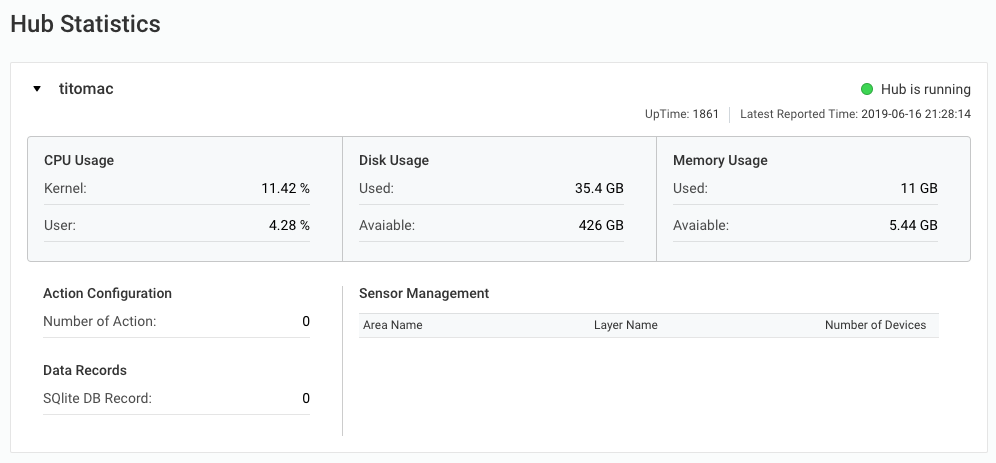 You can get a view of your Gravio Hub Statistics by clicking on the “Statistics” tabs in your Coordinator.