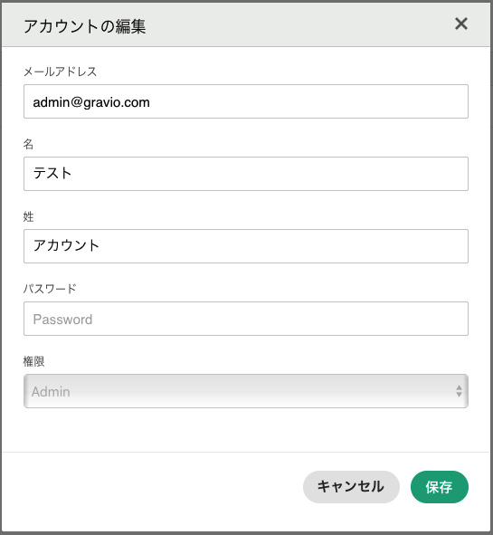 作成したアカウントを編集するには、アカウント一覧画面の該当アカウントの「編集」ボタンを押します。