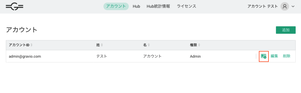 Gravio Gravioコーディネーターにログインしてからアカウントタブを選択します。