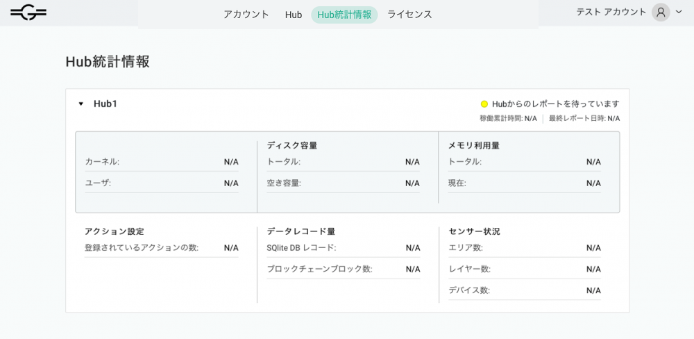 Hub統計情報は、Hubから定期的に送信されるステータス情報が表示されます。
