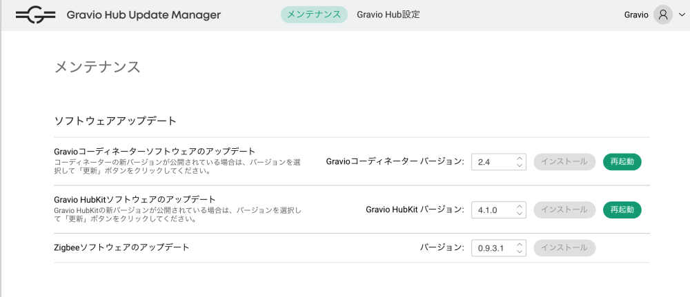 Gravioコーディネーター / HubKitソフトウェアの更新