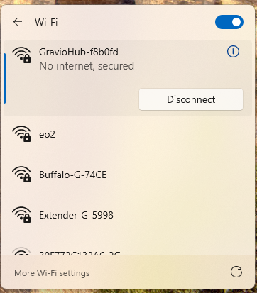 After starting up Gravio Hub X64, connect to the SSID named GravioHubXXXXXXXXXXX on your PC.