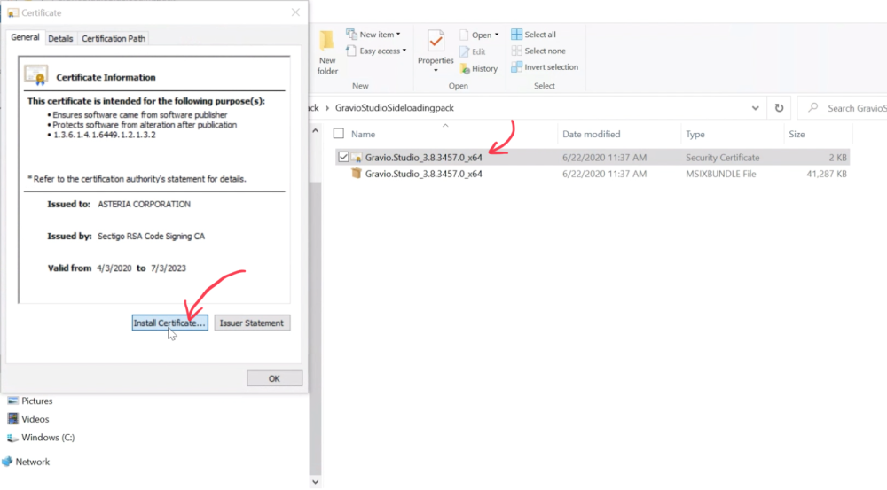 Sideloading procedures for Gravio Studio for Windows