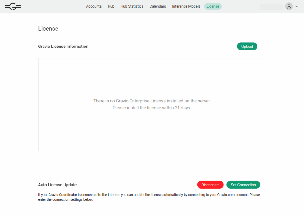 If the Hub is connected to the internet, you can update the license file from Gravio.com.
