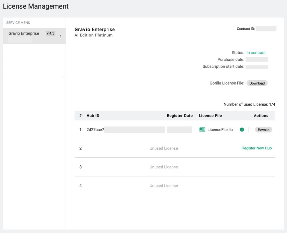 *Please note that the contract content of Gravio Enterprise AI Edition Platinum is used as an example on the screen. Depending on your contract, there may be differences in Gorilla licenses and other restrictions.