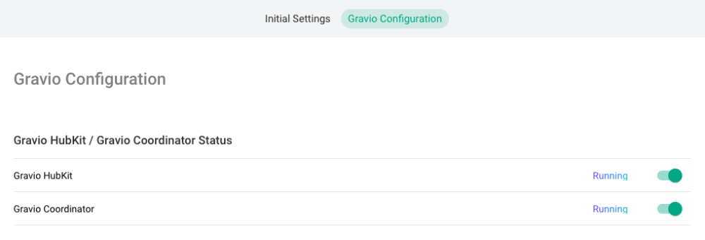 You can restart hubkit either via Mac Menu app or Windows Tray app, or you can open the Configuration Manager using the IP address followed by the port :8080 , where you can see the toggle to switch HubKit or the Coordinator off and on again.