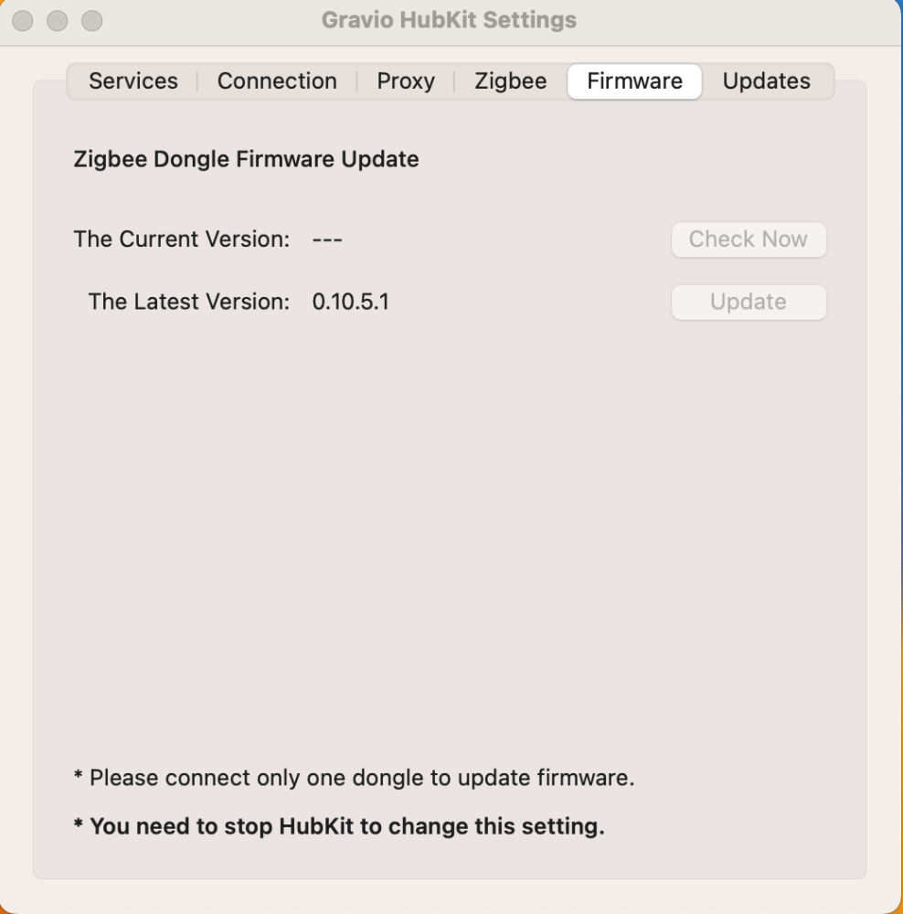Set the timing to regularly check if there is a newer version of HubKit. Press the ‘Check Now’ button to check immediately for the latest version.