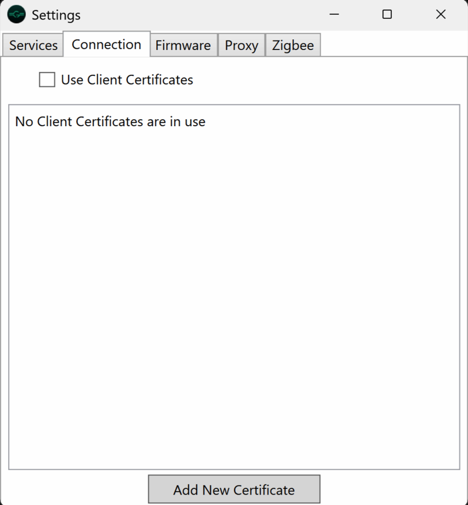 Select ‘Use Client Authentication’ if you want to restrict the Gravio Studio that connects to the HubKit. For instructions on how to install the certificate, refer to If you want to restrict access from Gravio Studio to the hub.