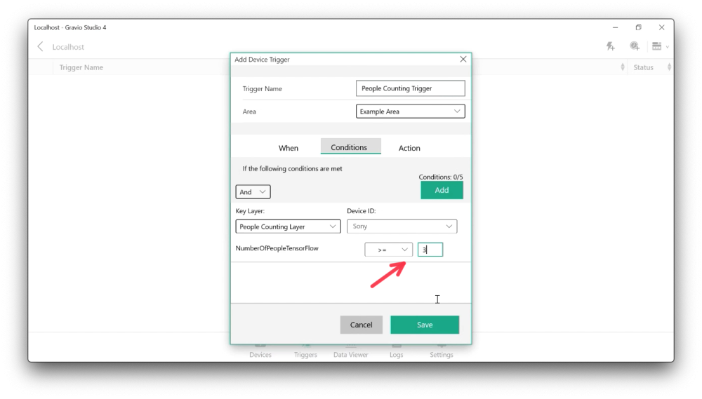Gravio also supports software sensors. An example for a software sensor could be a camera that detects how many people are in a room and triggers certain Actions if certain thresholds are reached. These sensors are created using software and artificial intelligence (with inference files) using TensorFlow.