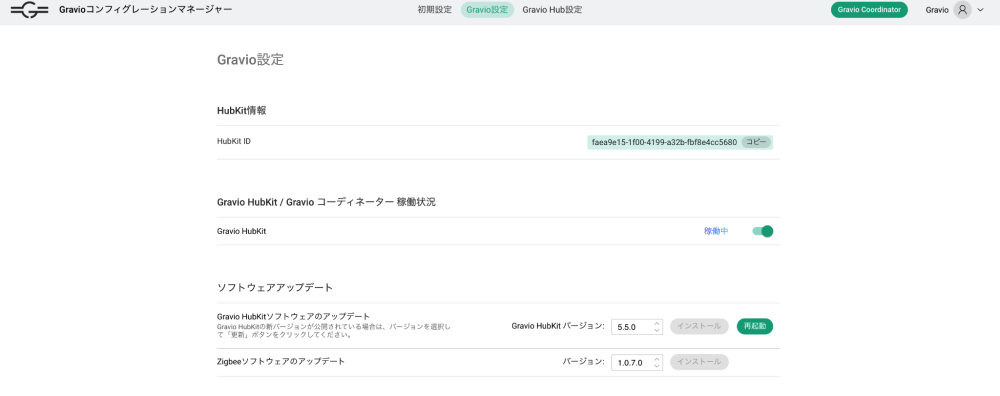コーディネーターとHubKitのソフトウェアを更新することが出来ます。