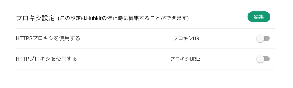 HubKitがインターネットサービスを使用する場合にProxyサーバーを経由する必要がある場合に設定します。