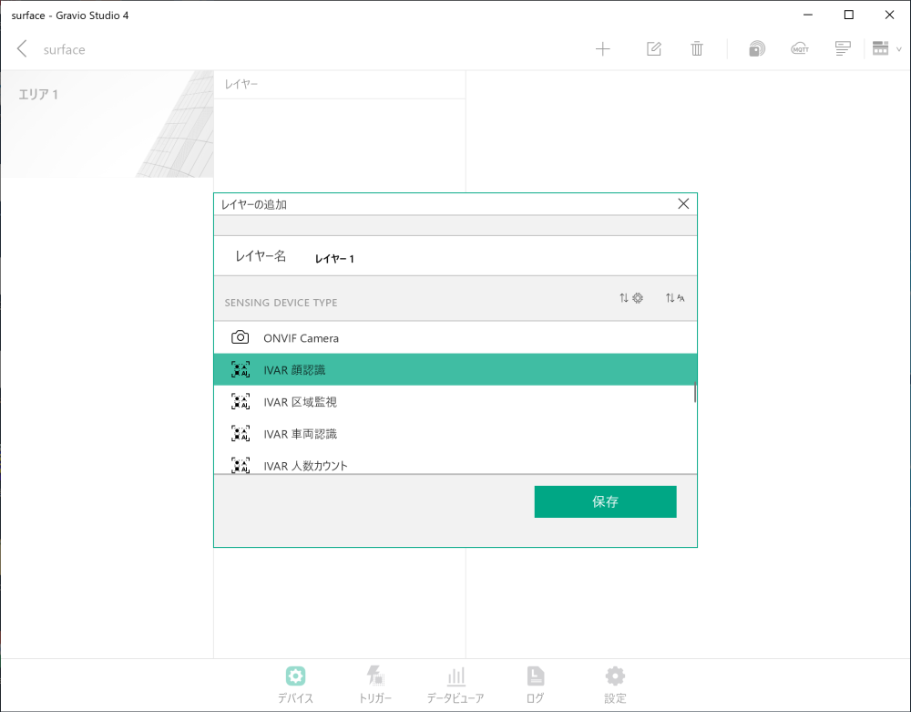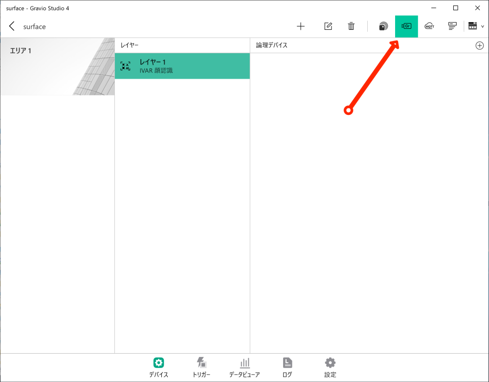 Gravio Studio のデバイスタブを選択してエリアとレイヤーを追加します。