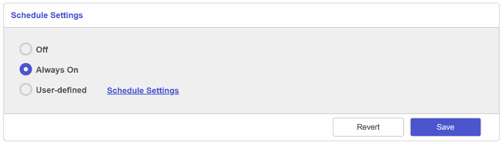 設定を有効にするために Schedule Settings は Always On を選択して Save ボタンを押します。
