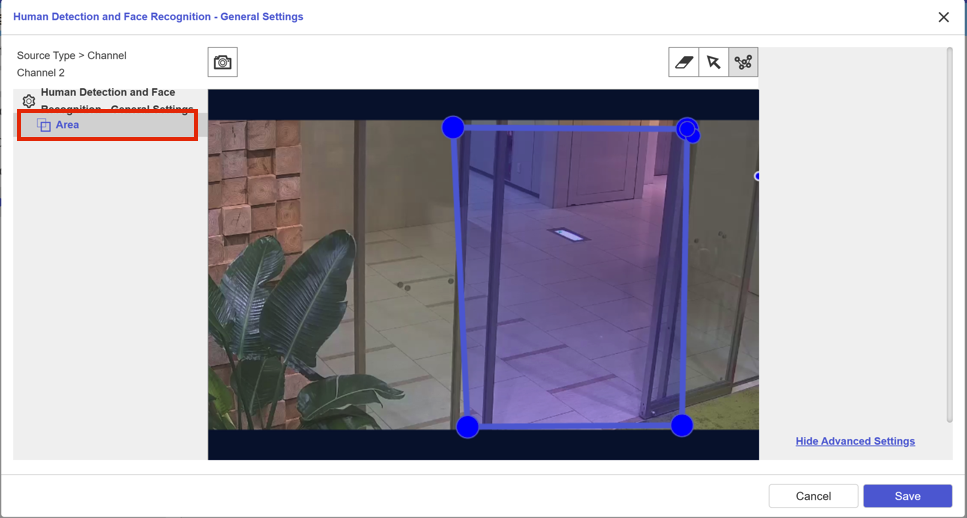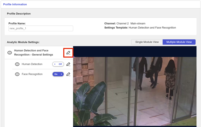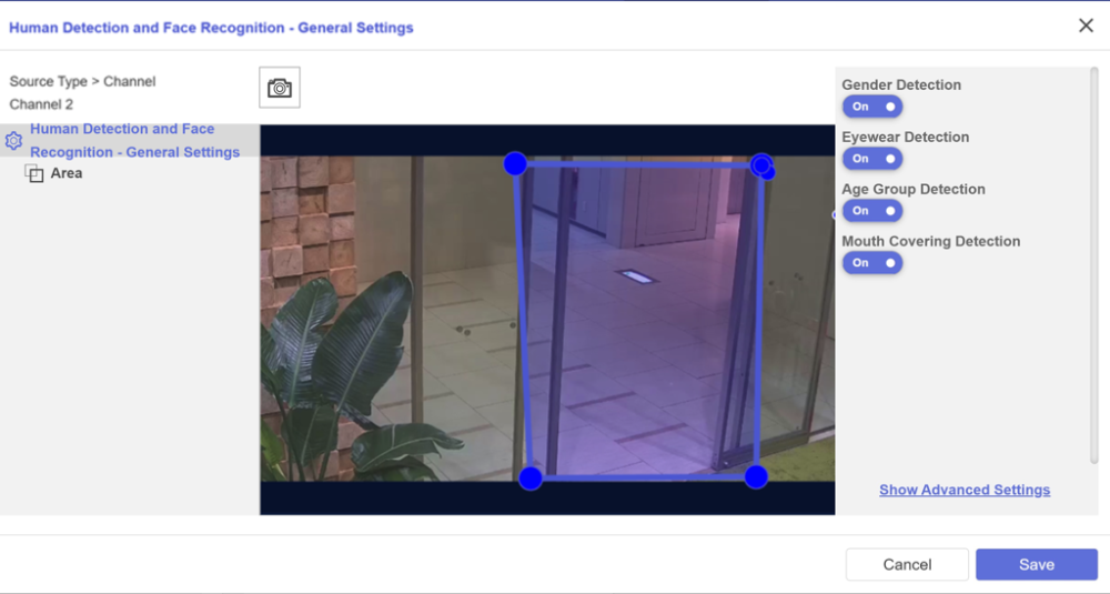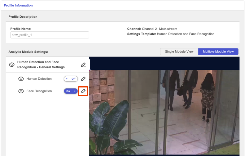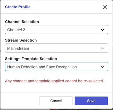 Create Profile で Channel Selection は Channel 2 を、Settings Template Selection は Human Detection and Face Recognition を選択して Save ボタンを押して保存します。