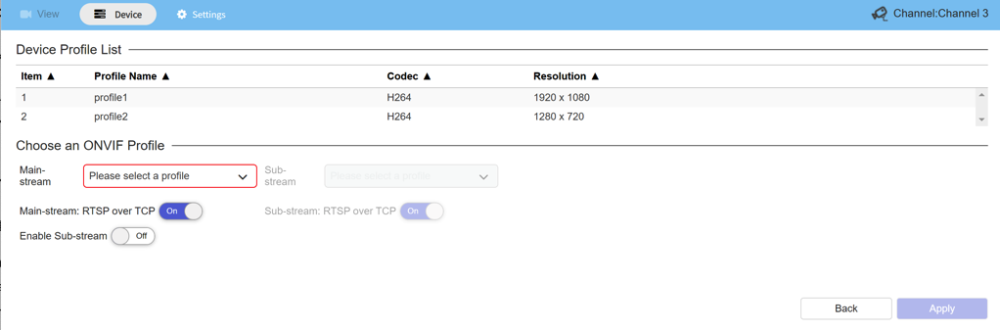 カメラで使用できるプロファイルが一覧に表示されますのでMain-streamで選択します。