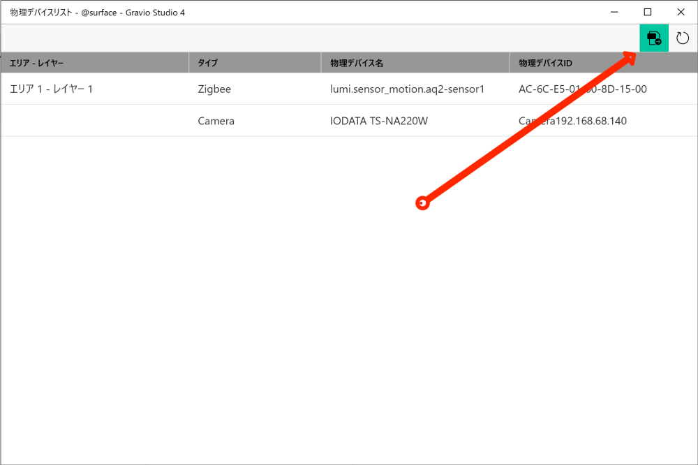- 以下のボタンを押して、物理デバイス一覧画面を表示します。