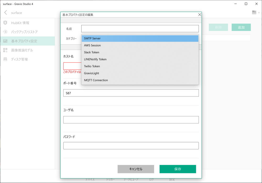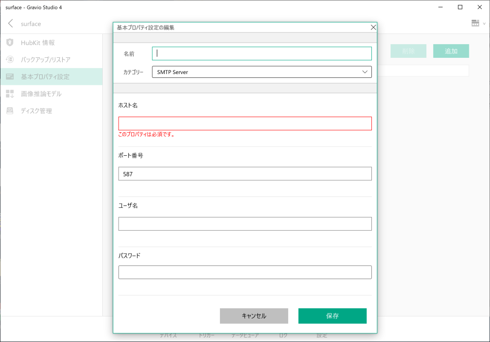 基本プロパティはセキュリティ情報はからで登録されますので、環境に合わせて値を設定します。
