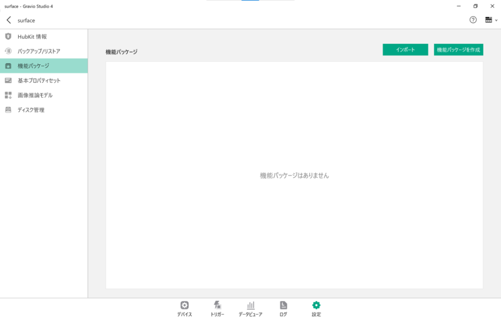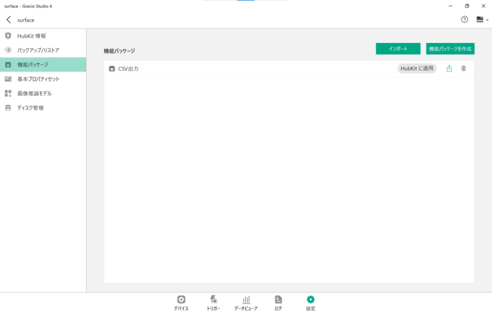 「インポート」ボタンを押すと予め作成されている機能パッケージをインポートします。