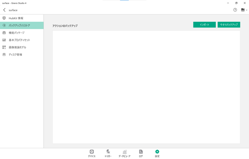 アクション設定をGravio Cloudアカウントにバックアップすることができます。 これらの設定をGravioアカウントのホームフォルダにリストアすることができます。