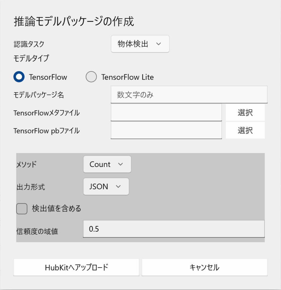 新たにTensorFlowかTensorFlowLiteのモデルパッケージを作成します。