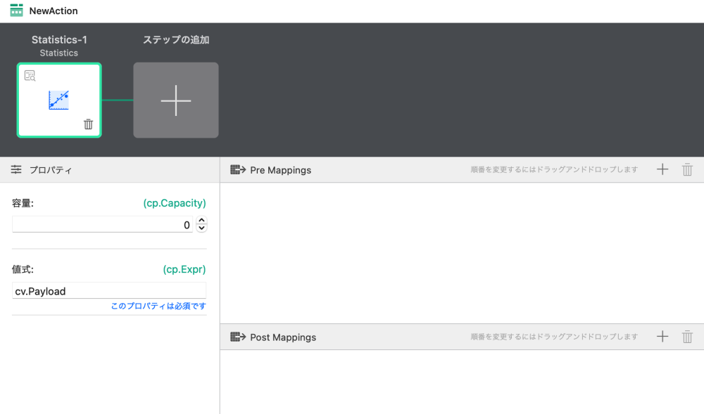 容量が0で、値式に cv.Payload.Data と指定すると [123, 456, 789] で様々な統計が計算されますが、出力Payloadは [{Data:123, Layer:"abc"}, {Data:456, Layer:"abc"}, {Data:789, Layer:"abc"}] となります。